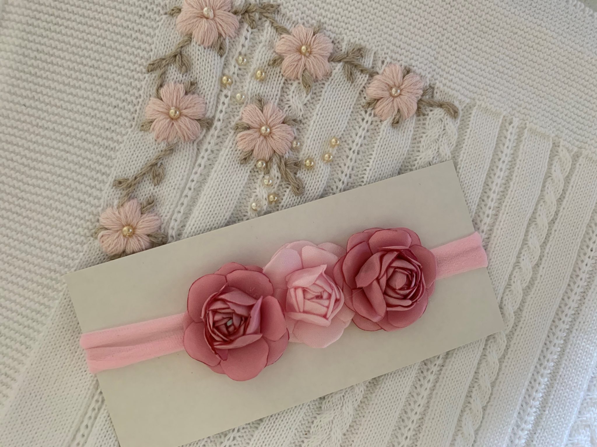 Tiara Três Flores Rosê/Rosa/Rosê